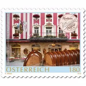 2019年6月29日,奥地利邮政发行一枚《奥地利美食》系列邮票,主题为乌纳甜品店的美食。这是一家位于奥地利温泉小镇巴特伊施尔的著名甜品店,于1832年开业。这里的蛋糕是弗朗茨·约瑟夫皇帝最喜欢的甜点。