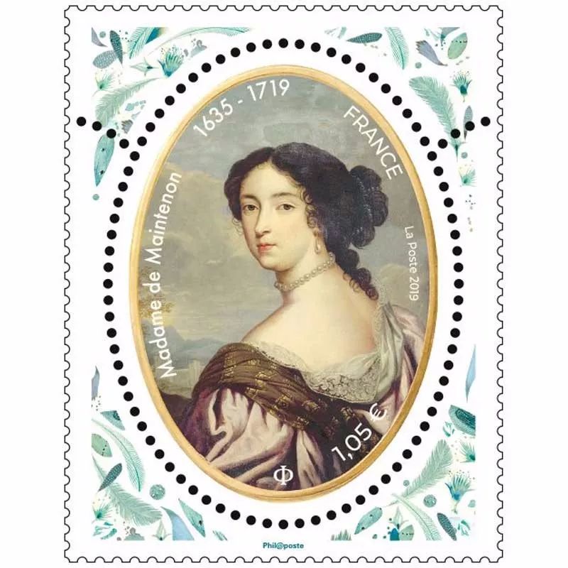 2019年7月1日,法国邮政发行一枚邮票纪念曼特农夫人逝世二百周年。曼特农夫人(Madame de Maintenon,1635 – 1719)是法国国王路易十四的第二个妻子。她1652年和作家保罗·斯卡龙结婚。1660年丈夫死后寡居曼特农城堡。她美貌绝伦,富于同情心。1675年路易十四赐她为曼特农侯爵夫人。1683年法国王后死后,路易十四娶她为妻。