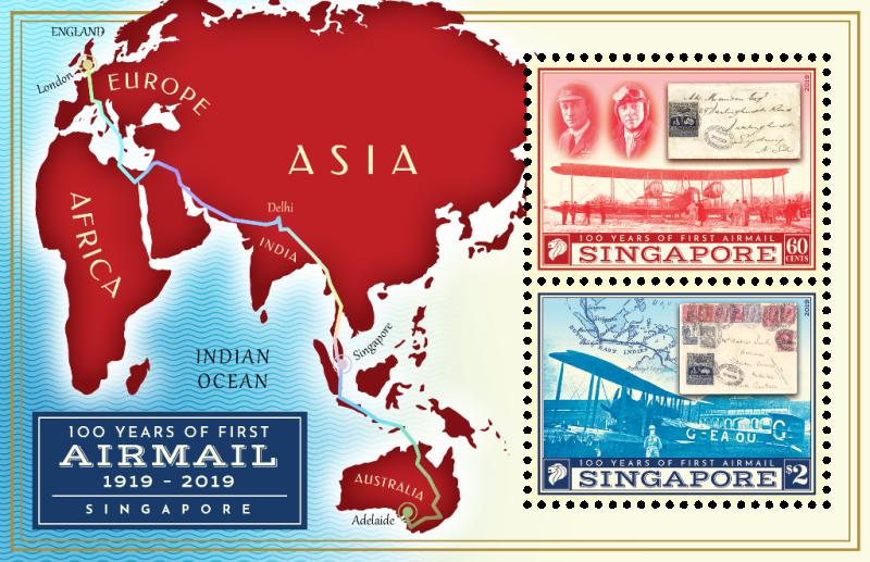 新加坡7月31日发行航空邮件100年小全张