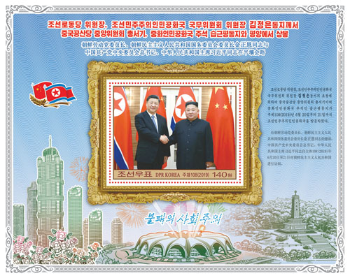 朝鲜8月8日发行习主席访问朝鲜小型张