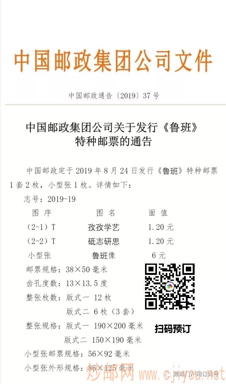 【国家邮政局下发清晰大图欣赏】2019-19《鲁班》邮票、小版张、大版张正式高清图案亮相 本月发行
