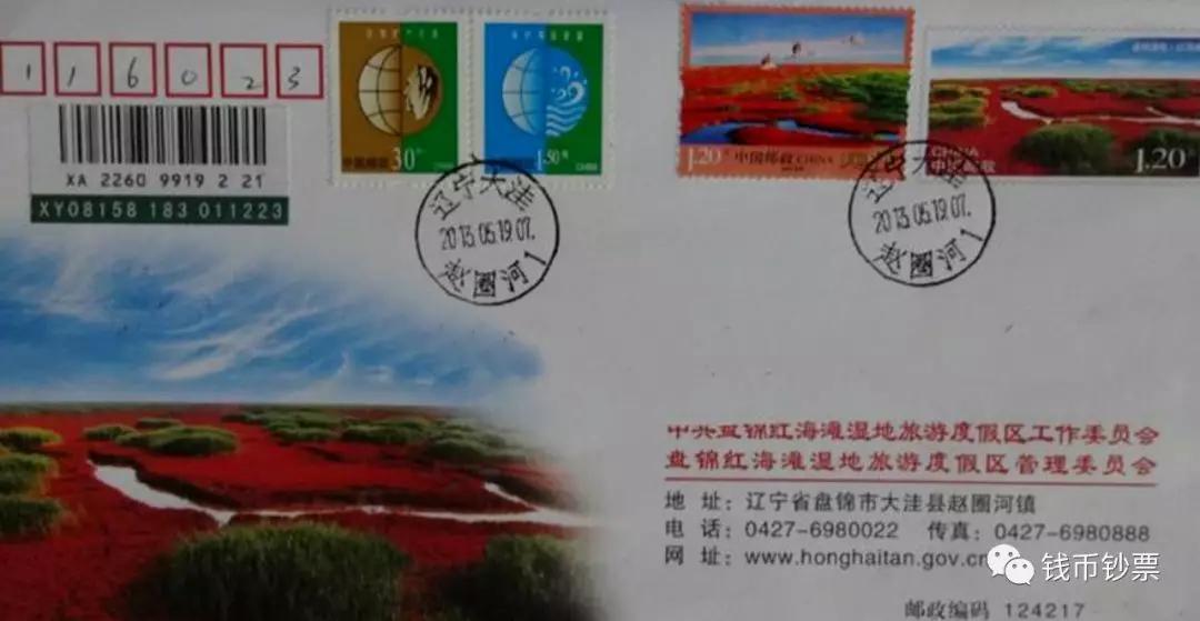 《盘锦红海滩》普通邮资片8月15日发行。这是盘锦红海滩第四次登上邮资票品。