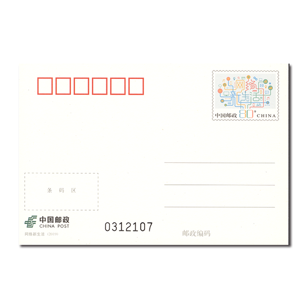 中国邮政定于2019年8月17日发行《网络新生活》普通邮资明信片1套1枚。详情如下: