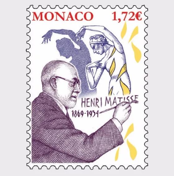 2019年8月5日,摩纳哥邮政为法国著名画家马蒂斯诞辰150年发行一枚纪念邮票。法国著名画家、雕塑家、版画家亨利·马蒂斯(Henri Matisse,1869—1954)是野兽派的创始人。这枚邮票表现的是他在摩纳哥芭蕾舞团所上演的芭蕾舞《红与黑》所设计的服装。