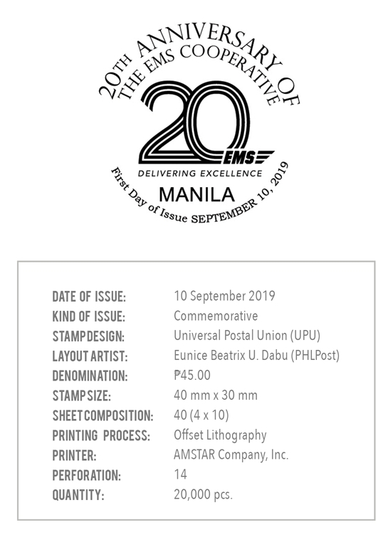 菲律宾9月10日发行EMS合作机构成立20周年邮票