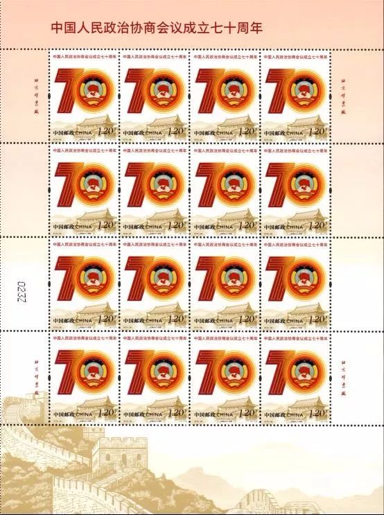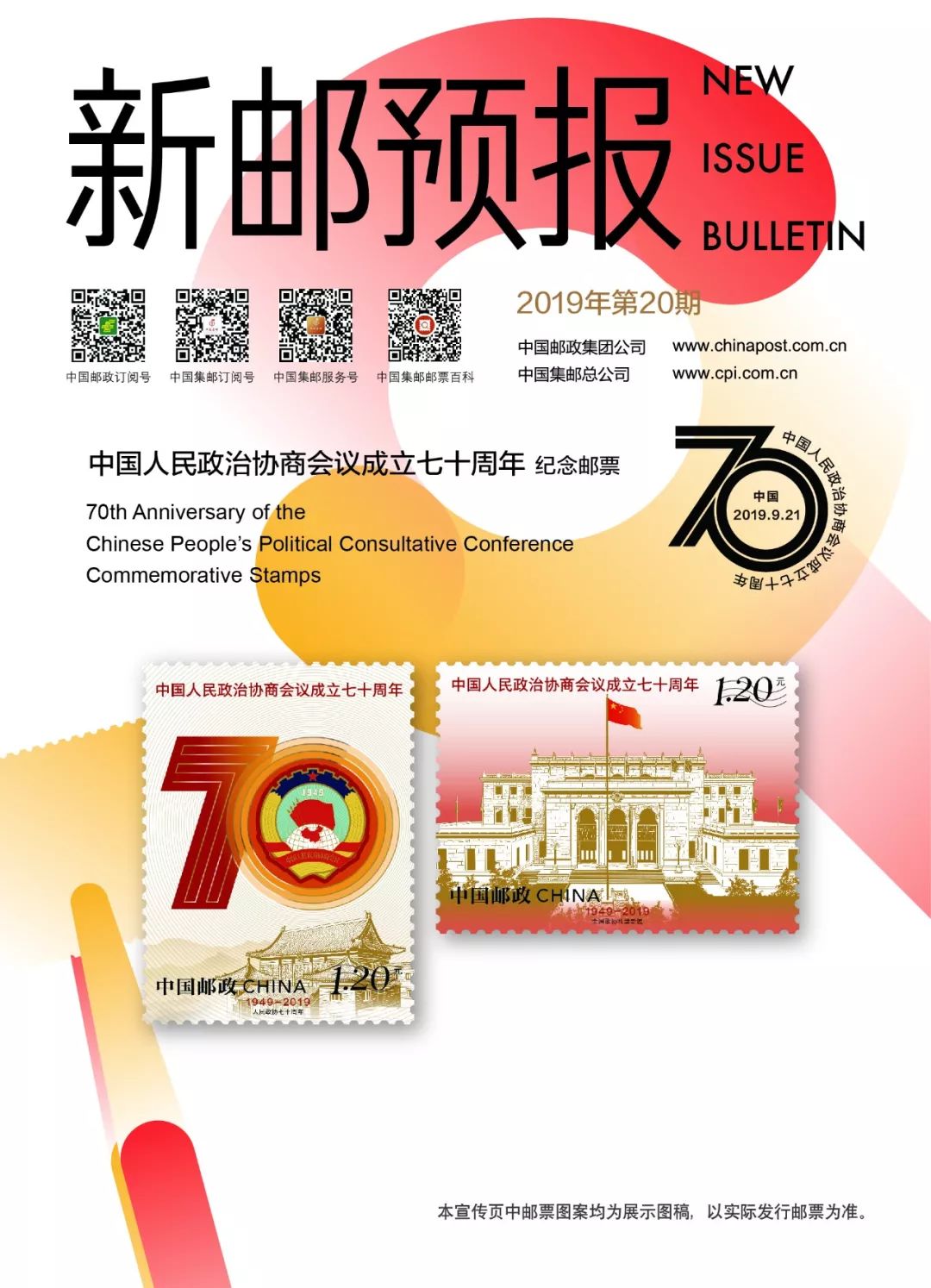 中国邮政定于2019年9月21日发行《中国人民政治协商会议成立七十周年》纪念邮票1套2枚。详情如下: