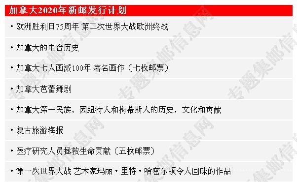 加拿大2020年新邮发行计划 加拿大2020年邮票发行计划...
