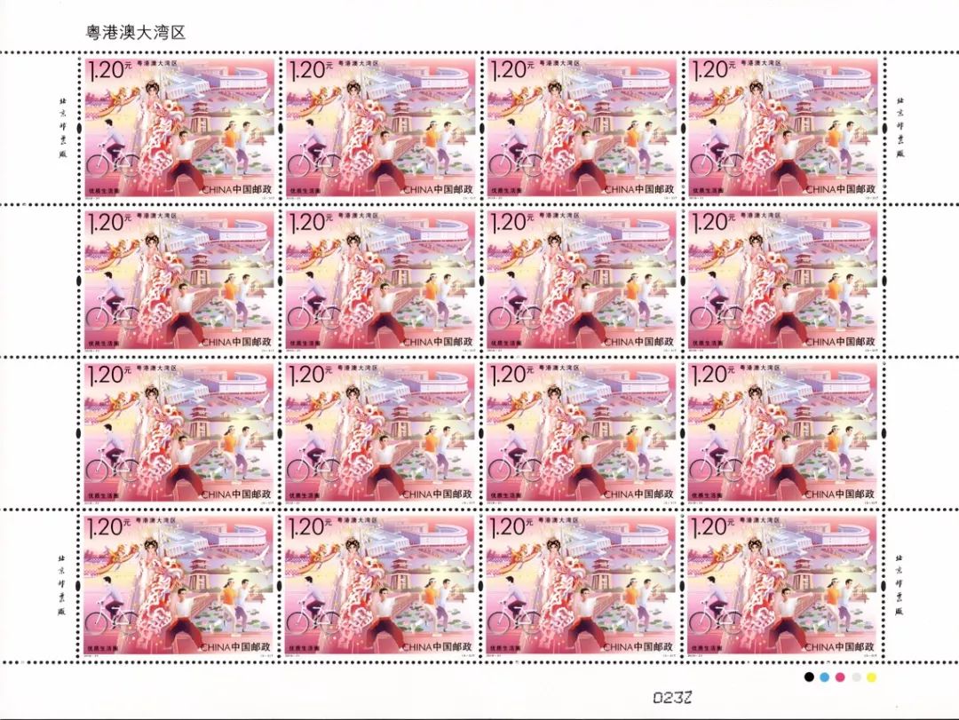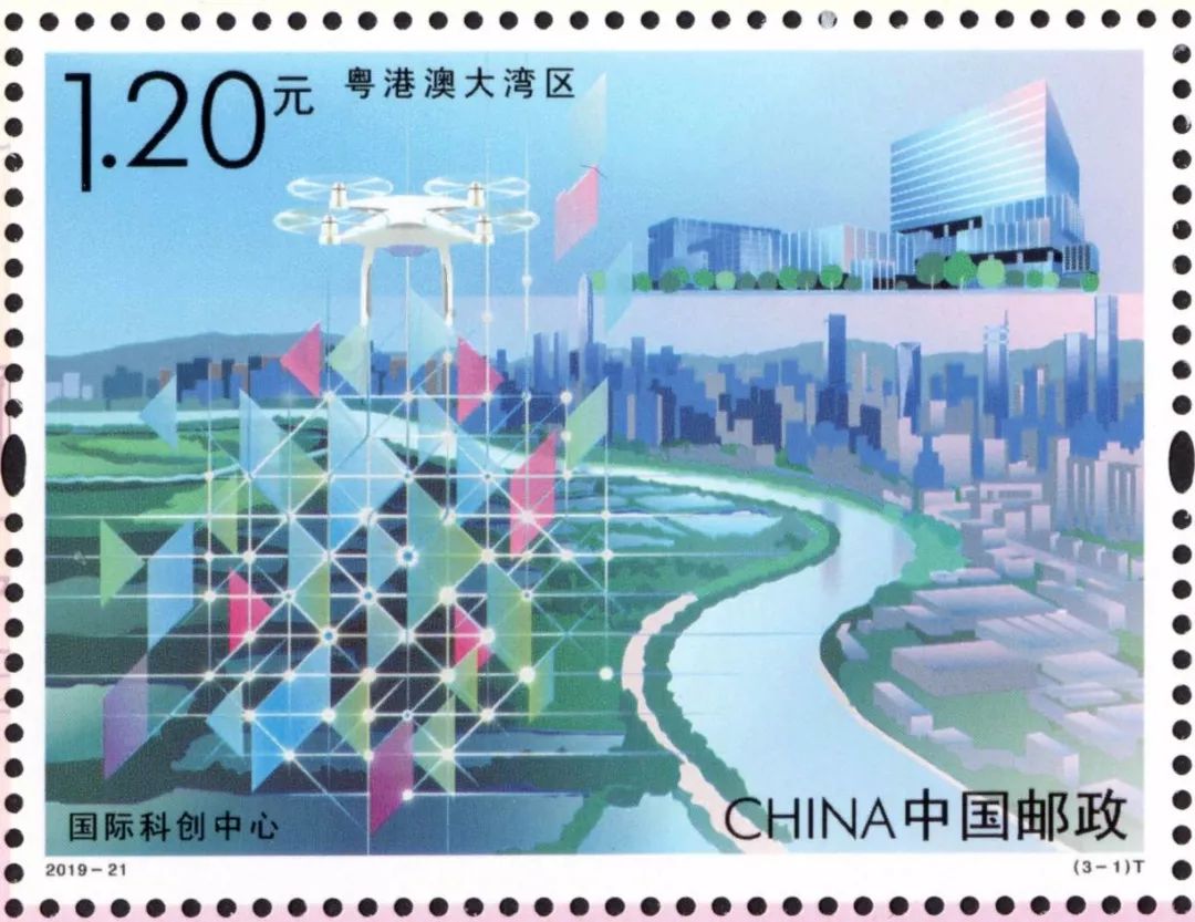 邮票印制使用了特殊油墨点缀画面,凸显了粤港澳大湾区的科技感和现代感。