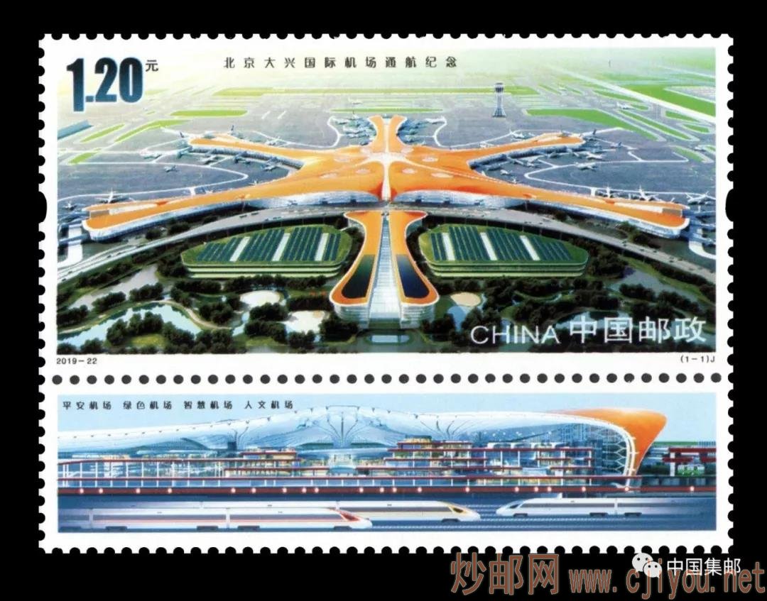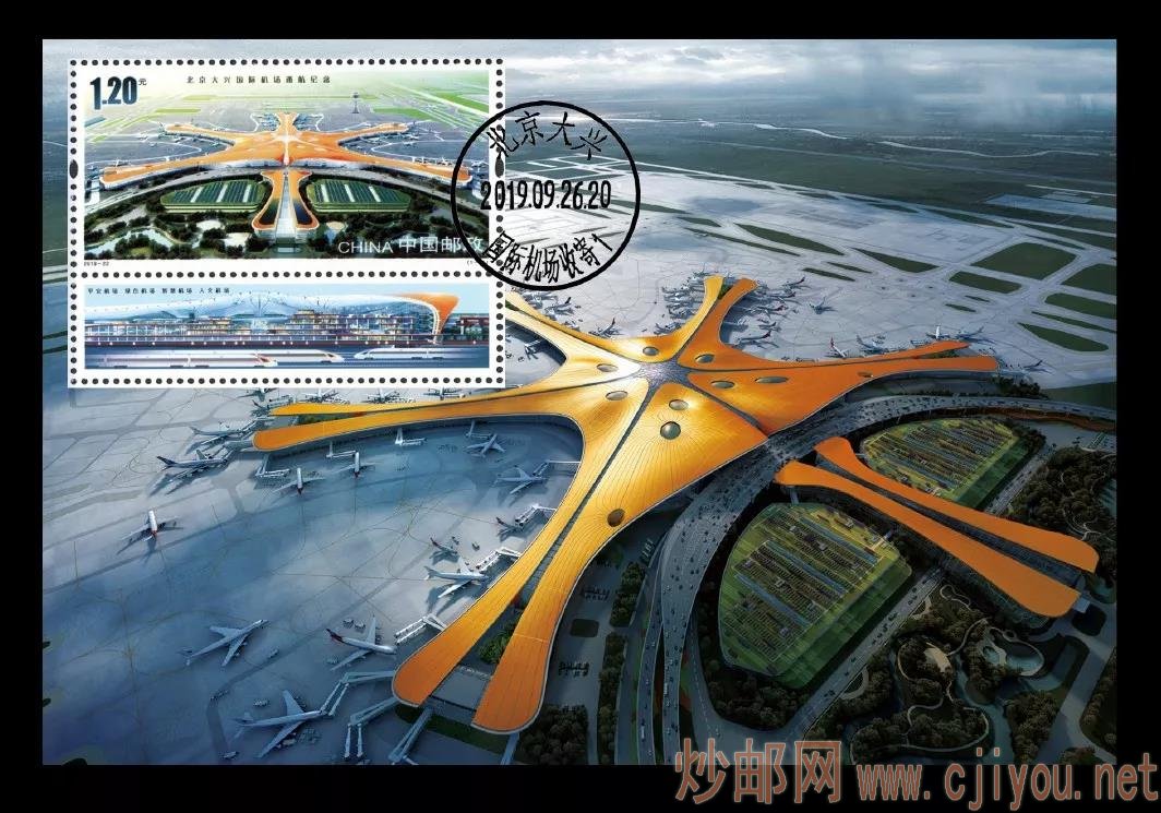 中国邮政定于2019年9月26日发行《北京大兴国际机场通航纪念》纪念邮票1套1枚,全套邮票面值为1.20元。