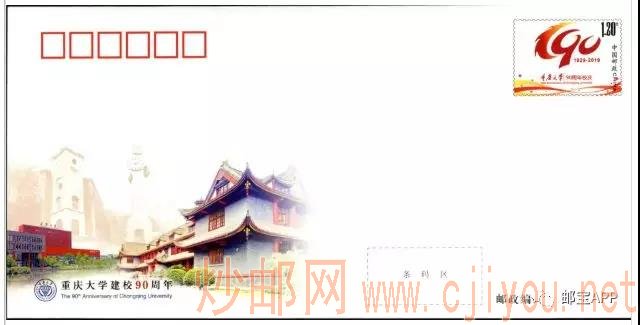 中国邮政定于2019年10月12日发行《重庆大学建校90周年》纪念邮资信封1套1枚。详情如下: