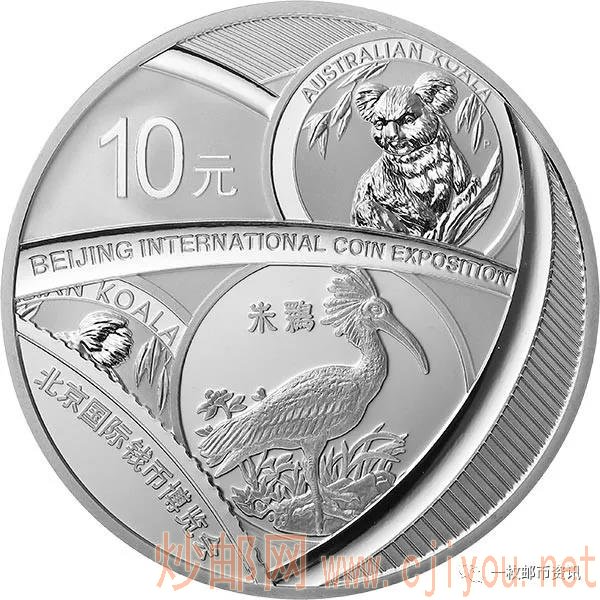 2019北京国际钱币博览会银质纪念币的正面图案是北京国际钱币博览会标志,衬以地球图形及象征币齿的线条等组合设计,并刊国名、年号。画面整体设计寓意北京钱币博览会的国际化,体现了国际钱币文化交流的主题。该纪念币背面图案以中国珍稀动物朱鹮银币与澳大利亚考拉银币作为主体元素,结合钱币图形元素组合设计。整体画面构图新颖,结构层次分明,具有现代的艺术美感,充分展现了国际钱币文化交流的设计理念。