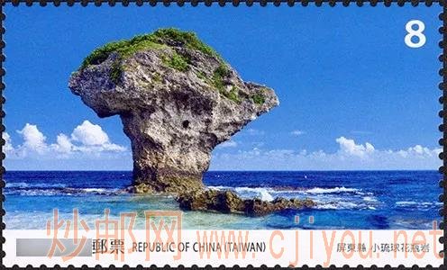 3、小琉球花瓶岩(面值8元):位于小琉球北部海岸,是一块珊瑚礁岩,外形似花瓶的特殊造型,因其邻近小琉球主要的出入港口,为小琉球最著名的景点。