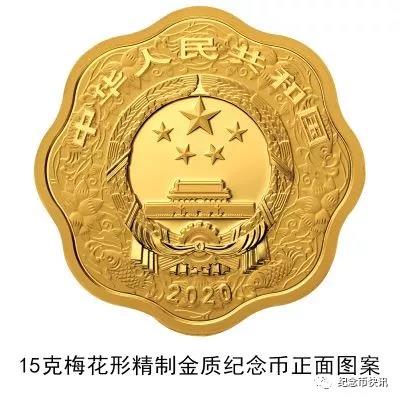 (七)15克梅花形金质纪念币为精制币,含纯金15克,外接圆直径27毫米,面额200元,成色99.9%,最大发行量8000枚。