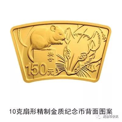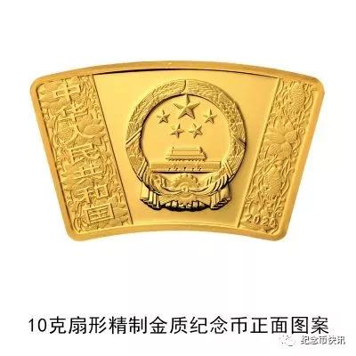 (五)10克扇形金质纪念币为精制币,含纯金10克,外圆半径51毫米,内圆半径36毫米,圆心角30度,面额150元,成色99.9%,最大发行量10000枚。