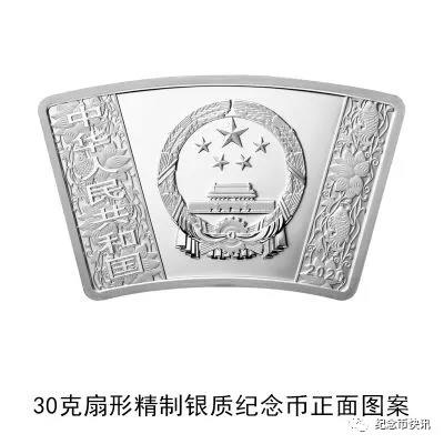 (六)30克扇形银质纪念币为精制币,含纯银30克,外圆半径85毫米,内圆半径60毫米,圆心角30度,面额10元,成色99.9%,最大发行量60000枚。