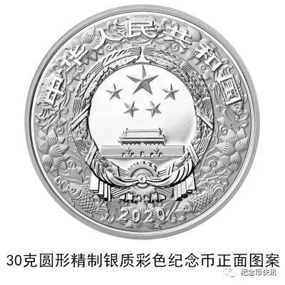 (二)30克圆形银质纪念币为精制币,含纯银30克,直径40毫米,面额10元,成色99.9%,最大发行量200000枚。