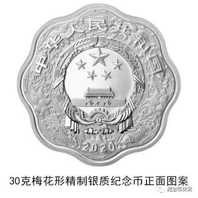 (八)30克梅花形银质纪念币为精制币,含纯银30克,外接圆直径40毫米,面额10元,成色99.9%,最大发行量60000枚。
