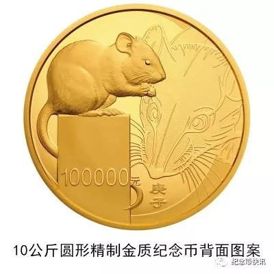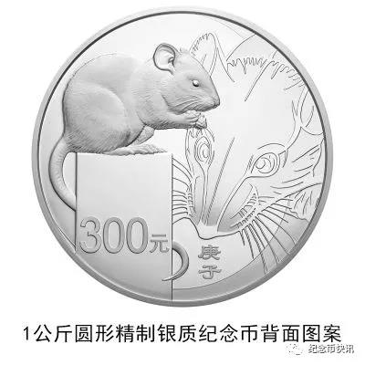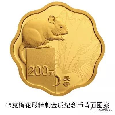 3克圆形金质纪念币、10克扇形金质纪念币、15克梅花形金质纪念币、150克长方形金质纪念币、500克圆形金质纪念币、1公斤梅花形金质纪念币、2公斤圆形金质纪念币、10公斤圆形金质纪念币、30克圆形银质纪念币、30克梅花形银质纪念币、30克扇形银质纪念币、150克长方形银质纪念币、1公斤圆形银质纪念币等13枚金银纪念币背面图案均为写实鼠造型,衬以装饰鼠纹样,并刊面额及“庚子”字样。