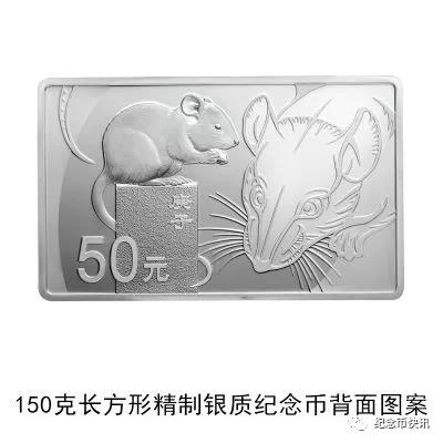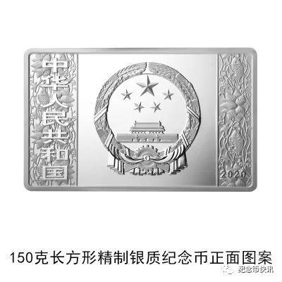 (十)150克长方形银质纪念币为精制币,含纯银150克,规格80毫米×50毫米,面额50元,成色99.9%,最大发行量10000枚。