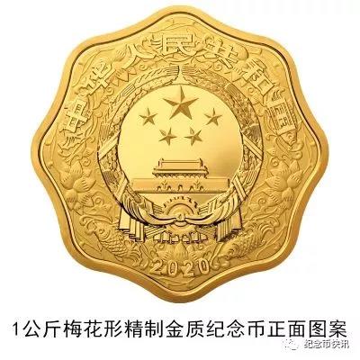 (十四)1公斤梅花形金质纪念币为精制币,含纯金1公斤,外接圆直径100毫米,面额10000元,成色99.9%,最大发行量118枚。