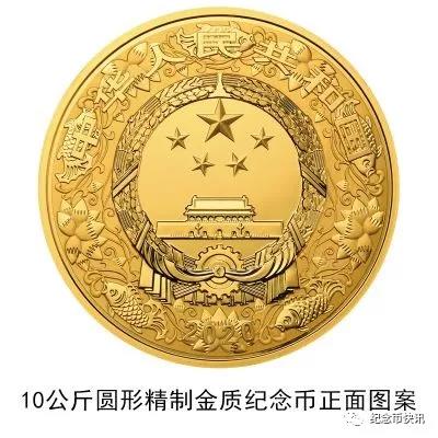 (十七)10公斤圆形金质纪念币为精制币,含纯金10公斤,直径180毫米,面额100000元,成色99.9%,最大发行量18枚。