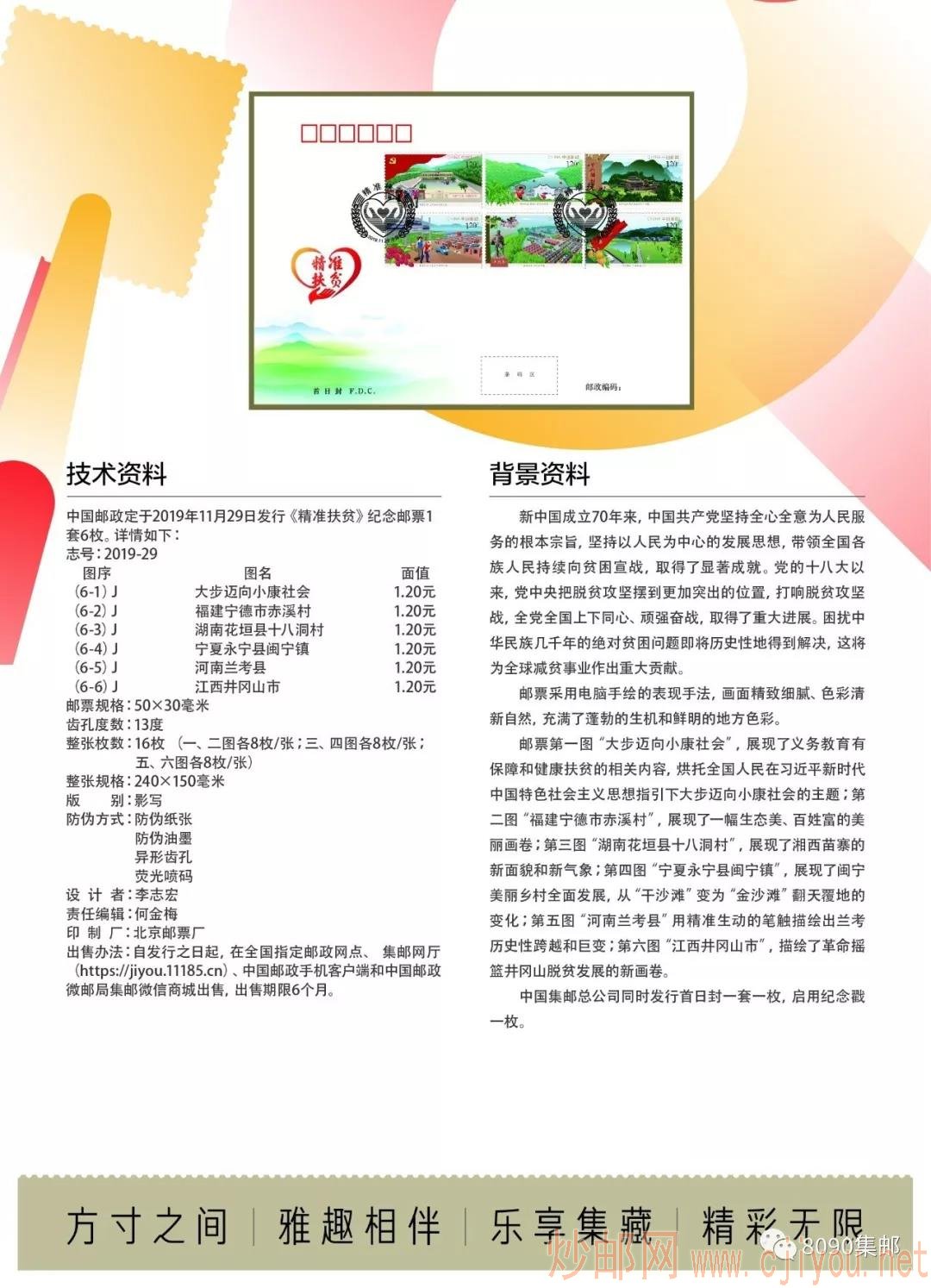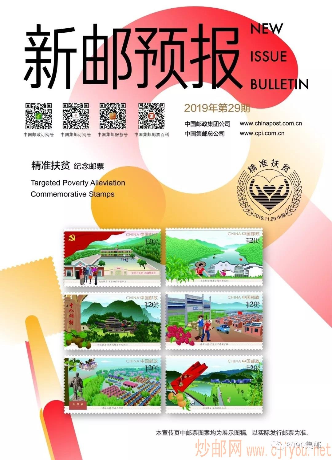 中国邮政定于2019年11月29日发行《精准扶贫》纪念邮票1套6枚。