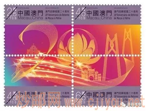 12月20日,发行《澳门回归祖国二十周年》邮票1套4枚,面值分别为:2.5圆、4圆、4.5圆、6圆。同时推出小型张1枚,面值12圆。