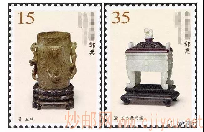 12月10日,发行《故宫玉器邮票(续)》1套4枚,名称及面值分别为清 玉螭纹杯(面值7元)、清 玉凤鸟瓶(面值12元)、汉 玉卮(面值15元)、清 玉方鼎形炉(面值35元)。
