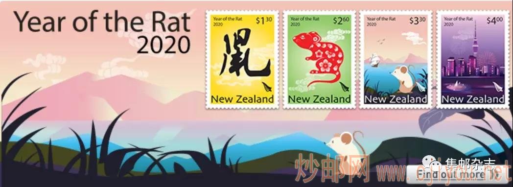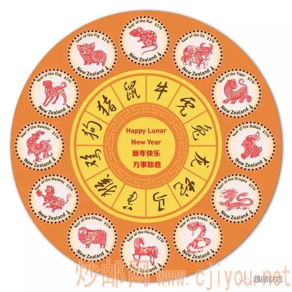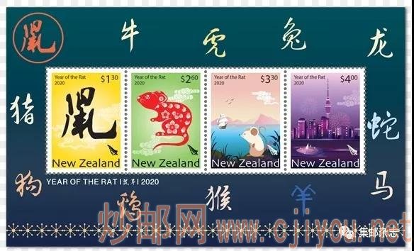 新西兰今日发行“鼠年”生肖邮票 日期:2019-12-04 新西兰邮政于2019年12月4日发行“2020鼠年生肖”邮票一套4枚,同时发行小全张一枚。邮票图案为汉字“鼠”等。 新西兰邮政还于12月4日发行“新年快乐 万事如意”邮票小全张一枚,小全张为圆形,内含12枚圆形邮票。图案为十二生肖。