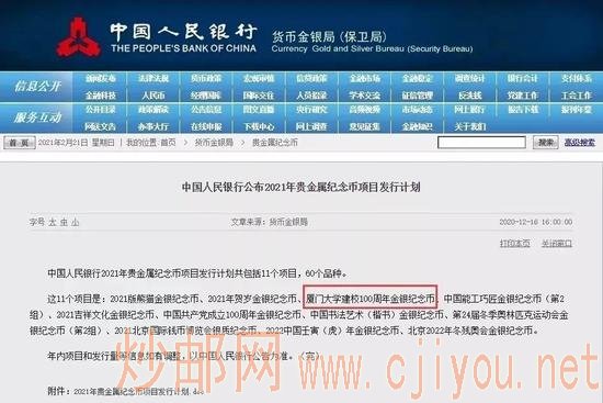据厦大校庆办透露,3月下旬,中国人民银行将发行厦门大学建校百年纪念币,一套2枚。
